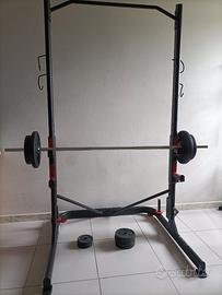 Vendo Rack 500 decathlon+ bilanciere 1,80cm + manubri componibili+ dischi in ghisa 60 kg
