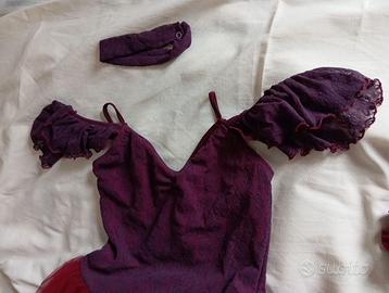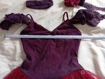 Raffinato ed elegante tutù per DANZA CLASSICA tipo DEGAS - color amaranto, accessoriato con collarino e nastro capelli - età 12-14 anni, altezza circa 1.60 (vedi misure dettagliate in foto)