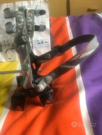 Ramponcini Camp Quattro molto leggeri (solo 363g) usati poco ed in ottime condizioni (con dei normali segni di utilizzo per un oggetto che viene utilizzato a contatto con il suolo), corredati della sua chiave per regolare il corretto fissaggio della scarpa (adatto a tutti i tipi di calzature) sul ramponcino e della sua custodia con cerniera ed asola per fissaggio anche esternamente allo zaino.