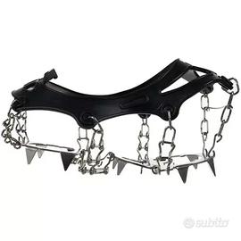 Le 12 punte in acciaio inox (10 da 16 mm e 2 da 8 mm) offrono presa eccellente su ghiaccio vivo, neve compatta e sentieri scivolosi.