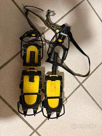 Ramponi automatici Charlet Moser 10 punte in acciaio. Mintano amche su scarponi skialp Regolabili in lunghezza piede. Completi di sacca per trasporto. Vendo per passaggio a scarponi con attacco semiautomatico. Tenuti bene, azienda acquistata da Petzl e che tuttora produce i ramponi per Petzl.