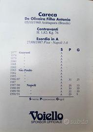 Scopri un autentico pezzo di storia del calcio con questa rara cartolina del 1992 dedicata a Careca, il leggendario centravanti del Napoli conosciuto anche come De Oliveira Filho Antonio. Questa preziosa cartolina, firmata dal giocatore, cattura un momento iconico durante una partita, con una foto in action e i dettagli sui punteggi dei campionati sul retro. La cartolina è in condizioni impeccabili, conservata con cura maniacale, e rappresenta un'opportunità unica per collezionisti e appassionati di calcio. Le dimensioni sono di 16,5 x 11,5 cm, perfette per esposizione o aggiunta alla tua raccolta. Non lasciarti sfuggire questa testimonianza di un'epoca indimenticabile del calcio italiano!