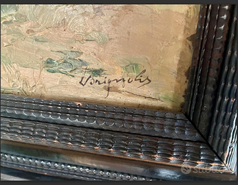 ESCLUSIVO e SPETTACOLARE DIPINTO olio su tela raffigurante "PAESAGGIO con FIGURE" dell'artista BRIGNOLI, racchiuso in preziosa cornice d'epoca decorativa.ANTICO riconducibile al 900. CONDIZIONI: ottimo stato conservativo ma essendo un articolo antico/vintage può presentare i lievi segni del tempo che ne attestano l'originalità e il fascino. Proveniente da collezione privata Villa Veneta del '900. MISURE: L69xh58xp6cm c.a. VISIBILE e RITIRABILE zona Treviso.