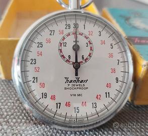 RARO CRONOMETRO TEDESCO HANHART 3 JIOIELLI 1/10 SEC FUNZIONANTE IN BOX ORIGINALE