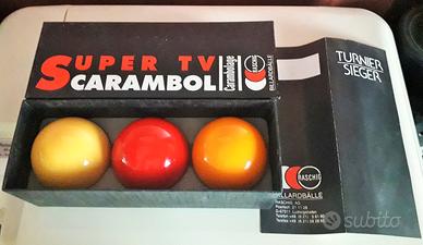 RASCHIG AG Germany set n°3 palle da biliardo vintage “SUPER TV CARAMBOL “ Billardballe, professionali omologate , nuove mai usate ,diametro 61,5 mm, confezione originale con garanzia . No tutto subito Vendo Euro 58.Gradito contatto telefonico wapp.Cell. 3478314154
