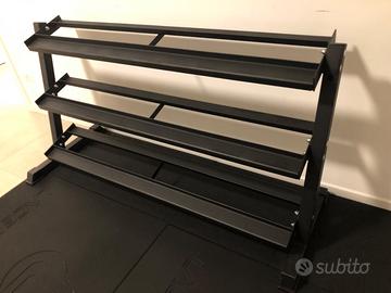 Vendo Rastrelliera e manubri Lacertosus pari al nuovo, usati pochissimo per uso personale nella mia home gym. Possibilità di vendita anche separatamente, sia per la rastrelliera che per i manubri (a coppia). Rastrelliera 350€, manubri da 15 kg 80€, da 17,5 kg 100€, da 20kg 120€, da 22,5kg 140€, da 25kg 150€, da 27,5kg 180€.