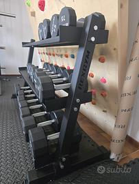 Rastrelliera per manubri Rexgym by Kingsgym in acciaio 155x57x97 46 kg Capacità 600 kg (200 kg per piano) Nuova, appena montata ma misura sbagliata. RITIRO IN ZONA TURATE - SARONNO