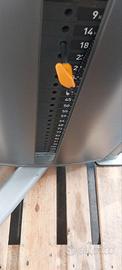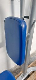 è dotata di bracci girevoli che si adattano alla lunghezza delle braccia dell'utente e la seduta è regolabile.