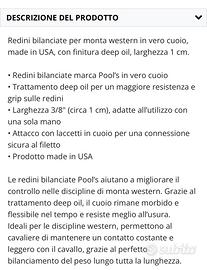 Redini bilanciate per monta western in vero cuoio, made in USA, con finitura deep oil, larghezza 1 cm.