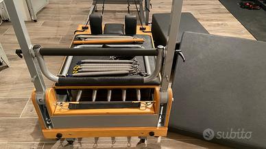 Bellissimo Reformer per Pilates, modello professionale normalmente utilizzato in strutture sportive, utilizzato pochissimo da una singola persona in casa privata. Completo di 2 torri e di tutti gli accessori per un utilizzo a 360 gradi. Per occupare meno spazio è possibile ripiegarlo e spostarlo nonostante il peso importante, grazie alle robuste ruote.