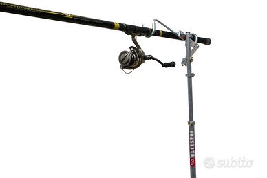 Reggi canna per la pesca dalla spiaggia con la bolognese teleregolabile e basculante per regolare l'inclinazione della canna. la base angolare assicura la massima stabilità anche in condizioni di forte vento laterale. la massima estenzione è di 160 cm. il che ci consente di poterlo utilizzare senza problemi anche per la pesca in acqua con i waders.
