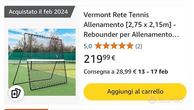 Rete da allenamento (anche da soli!), pensata per l'esterno (non arrugginisce e resiste a qualsiasi agente atmosferico). Pagata 240 vendo a 140, ideale per allenarsi da soli senza rincorrere palline per ore 😁 Vendo causa cambio configurazione del terrazzo su cui mi allenavo! Non spedisco, vista la natura dell'oggetto 😉