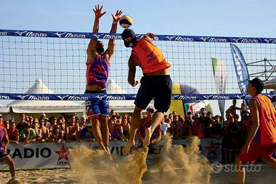 Il retificio La Rete offre nella sua linea tutto l’occorrente per equipaggiare un campo da beach volley con regolamentari da m 8.50×1, kit segnaletiche di nastri elastici e picchetti per il campo, impianti da beach volley con apposite bossole per la spiaggia e relative imbottiture di protezione o reti di recinzione para-palloni.