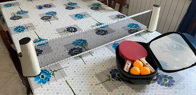 Rete da ping pong da viaggio Artengo Rollnet. Nuova, mai usata. Comprende rete estraibile, racchette da ping pong e 3 palline.