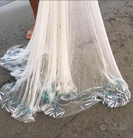 Rezzaglio di 16 mt circonferenza, in panno di tortiglia bianca o marrone con maglia 6 mm nella sacca fino a 1 metro di altezza, e con maglie di 10 mm nei tronchi superiori.