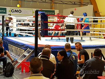 Ring rialzati certificati mt 5,20 ? 4.500 e mt4,20 ? 3.900 nuovi con colori a scelta. Ring che vedete in foto nel seguente ordine: ring per rientro di Fragomeni, ring consegnato alla Federaz. italiana, ring mt 7,20 consegnato al Comune di Cagliari presso Stadio Sant'Elia, ring da terra bianco consegnato al Presidente FIKB Veneto. Materiali ns produzione, italiani, certificati, alta qualità. Rialzati e non, tutte le misure ed altezze intermedie, da ? 2.000. Anche bellissime gabbie da mettere e togliere sopra, anche per eventi. Consegna e montaggio a prezzo agevolato in tutta Italia.