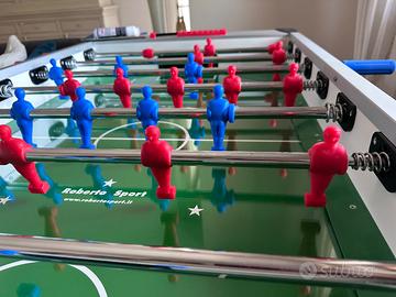 Marchio Roberto Sport Colore Grigio Materiale Legno ingegnerizzato Ferro Dimensioni del prodotto 134L x 110l x 90H cm Sport Calcio Peso articolo 143,3 Libbre Il calcio balilla Game - uno dei modelli di gioco libero più robusti e solidi disponibili Ideale per l'uso domestico e progettato per tutte le età Prodotto con materiali di alta qualità con una superficie in MDF spessa 20 mm progettata per resistere alle partite più competitive Il tavolo include gambe in ferro solido con piedini in plastica antiscivolo per garantire una superficie di gioco solida e stabile durante il gioco Il tavolo viene fornito con figure blu e rosse, include un sistema di punteggio su entrambe le estremità ed è fornito con 10 palline di serie e relativo telo di copertura