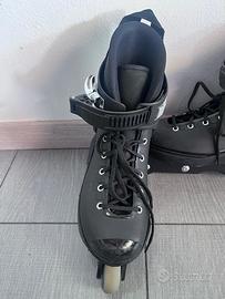 Pattino in linea dotato di scafo in High Grade Poliuretano HGPU, telaio in nylon rinforzato con fibra di vetro, ruote da 58mm88A, cuscinetti ABEC 5 e distanziatori in alluminio Chiusura con leva Memory e lacci Scarpetta con imbottitura anatomica e Slo-Memory Nuovi costano 180€ Usati poco perché dopo 4/5 utlizzi ha cambiato misura.