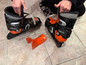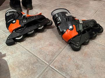 Ottime condizioni, come da foto però il supporto arancio del pattino destro si è rotto, quindi ogni volta va rimesso nella sua posizione prima di stringere le cinghie, sono comunque utilizzabili.