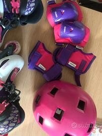 Set protezioni roller monopattino skate bambini PLAY ginocchiere e polsiere rosa/viola