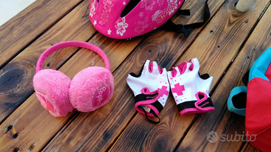 Completo da roller per bambina, roller n. 33-36, caschetto, gomitiere, ginocchiere, cuffie, guanti e zainetto.
