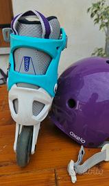 roller/pattini a rotelle, set composto da casco, polsiere e ginocchiere. Usato (vedi immagini) ma funzionanti! misura 32-35