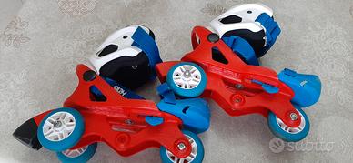 Marca Oxelo, come in foto sono più stabili, altrimenti si può spostare la ruota e si mette centrale da farli diventare roller in linea...