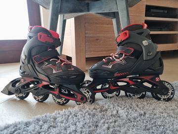 Vendo roller della Oxelo grigio scuro e rossi taglia 35-38. Qualche graffio sulla parte esterna ma usati pochissimo. vendo con sacca e regalo para mani, ginocchiere e gomitiere.