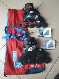 Roller bambino, colore nero e rosso usati pochissimo. Misura 32/34, lunghezza scarpa regolabile su 3 misure, avvolgenti con scocca in plastica e doppia chiusura (velcro + ganci di sicurezza). Ruote da 68 mm.
