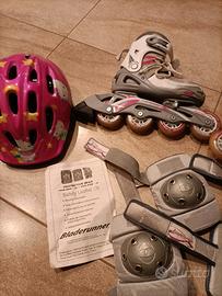 Roller Blade completi di protezioni e casco per bambina.