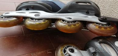 Roller blade Pattini ruote in linea, Exotech 6.0 misura 40, donna women's anatomical cuff, azzurri argento, laccio chiusura a rotella, ruote perfette (usati due volte), molto comodi, solo ossidato un snello stando in box.
