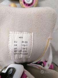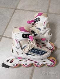 Vendo roller blade pattini per bambina allungabile, misura piede da 30 a 33 (come da foto), completi di protezione ginocchio, gomito, polsi e casco per la testa. Ottime condizioni, usati veramente poco.