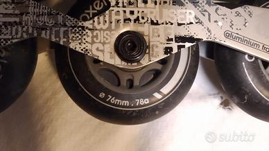 Vendo roller Blade unisex regolabile come da foto, per scarpe da 37 a 40, ruote da 76 mm , con anche protezioni per ginocchia gomiti e mani, disponibile anche casco