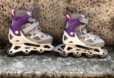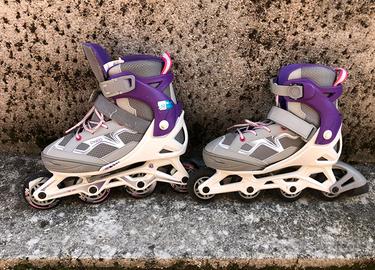 Roller FIT 3 JUNIOR OXELO Colore viola e grigio Taglia 35-38 regolabili Prodotto in ottime condizioni, sempre conservato nell’apposita borsa Solo consegna a mano