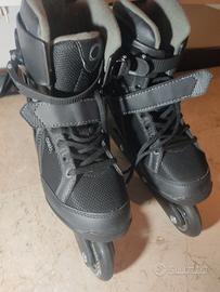 Roller fitness adulto FIT 100 nero-argento, di marca Oxelo. In perfette condizioni in quanto usati una sola volta, vendo per inutilizzo. Il prezzo di 35€ include anche borsa a tracolla e brugola originale per stringere le viti delle ruote.