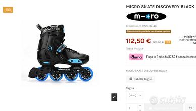 Roller, marca Micro Discovery, taglia 37-40, Black (pattini a rotelle in linea). Mai usati con accessori e confezione originale aperta solo per foto. Consegna a mano zona Romanina/Cinecittà.