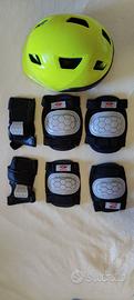 + set protezioni Oxelo tg XS 6-10 anni (+ regalo set protezioni tg più grande) + caschetto + borsa portatutto