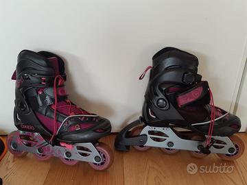 Vendo roller della linea Oxelo allungabili, MIS 34-37, compreso SET COMPLETO di PROTEZIONE (gomitiera, ginocchiera e polsiera) + custodia Decathlon e istruzioni. Ottime condizioni. Torino zona Mauriziano. Spedizione disponibile con TuttoSubito. Prezzo € 25,00.