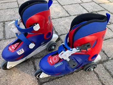 Roller da bambino taglia 32-34 con costodia, caschetto e protezioni per mani, gomiti e ginocchia.