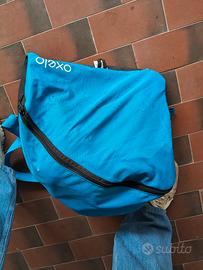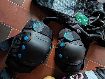 Roller Pattini in linea taglia 43 marca Oxelo e accessori come borsa, ginocchiere, protezione polsi e casco. Ruote di scorta.