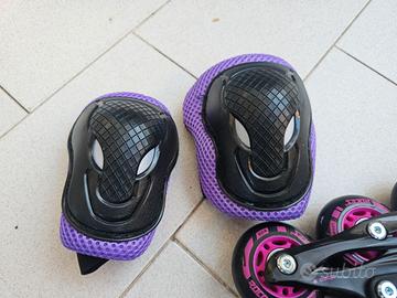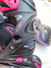 ROCES Pattini in linea a rotelle - Regolabili 4 Misure – dal 26 al 29 completo di tutti gli accessori casco e protezioni braccia e gambe.