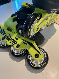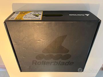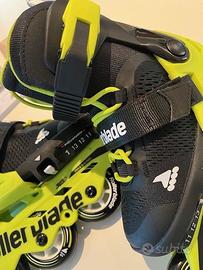 Vendo causa regalo doppio coppia mai utilizzata, nuova, di rollerblade bambino estensibili numero 28-32 completa di scatola originale intatta, manuale, kit manutenzione per ruote, freno e chiavi per regolare la misura del piede. Dalle foto si può notare lo stato eccellente delle ruote e del tessuto non essendo mai stati indossati. Con i rollerblade regalo coppia di gomitiere e ginocchiere per bambino età 06-09 anni colore nero. Disponibile a fornire altre foto.