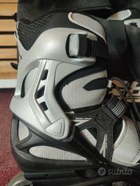 Rollerblade mod. Spark SC80 misura 42,5 da uomo usati poche volte, presentano modeste abrasioni, come da foto. Completi di protezioni (polsiere, gomitiere e ginocchiere) e di borsa per il trasporto.