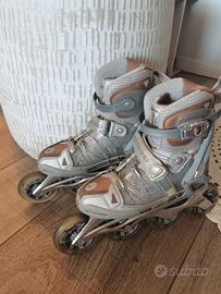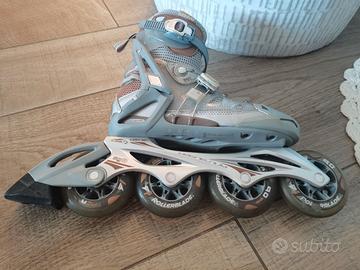 Vendo pattini in linea Rollerblade Macroblade con telaio in magnesio, leggeri e resistenti, ideali per allenamento fitness o pattinaggio urbano.