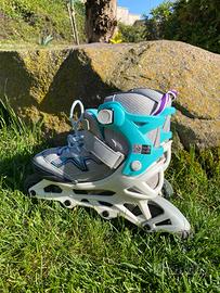 Rollerblade Oxelo Decathlon allungabili da taglia 32 a 35 di piede. Quattro ruote con freno.