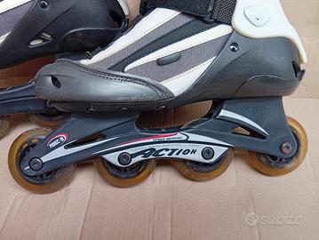 Vendo coppia di pattini in linea (tipo Rollerblade) taglia 42, usati pochissimo e in ottime condizioni. Le ruote sono ancora ben messe e scorrono perfettamente, ideali sia per principianti che per chi vuole riprendere a pattinare senza spendere troppo. Calzata comoda e stabile, con chiusura sicura (lacci + fibbie). Perfetti per passeggiate, fitness o tempo libero.