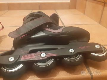 Rollerblade Oxelo , n°39 usati 1 forse 2 volte. completi di sacca , casco e protezioni per gomiti, ginocchia e polsi. praticamente nuovi. Ruote veramente come nuove.