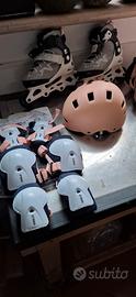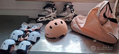 causa inutilizzo, vendo rollerblade Oxelo taglia da 32 a 35 con casco, ginocchiere, gomitiere, polsiere e borsa, mai usate.
