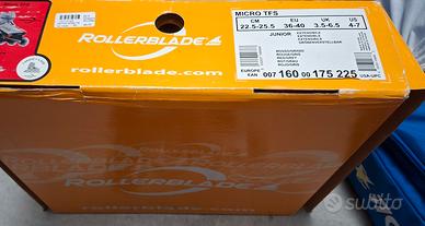 Pattini in linea rollerblade originali, taglia regolabile in modo furbissimo da 36 a 40 ottimo per ragazze e ragazzi per uso street e palestra. Allacciatura rapida con cordino in acciaio. Praticamente nuovi, cuscinetti puliti ed oliati.