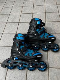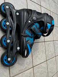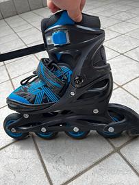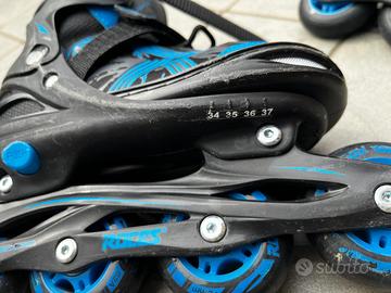 Vendo rollerblade roces bambino regolabili dal 34 al 37, usati alcune volte ma tenuti molto bene, sono incluse le protezioni ( 2 ginocchiere, 2 gomitiere e 2 per le mani) che presentano alcuni graffi.